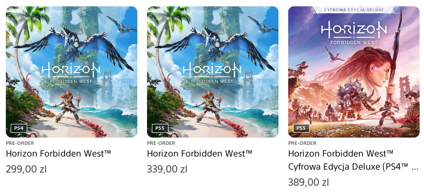 W ostatnich dniach, niedługo po przełożeniu daty premiery Horizon 2 na luty 2020 ( Horizon 2 opóźnione! Jedynka dostaje tryb 60 FPS), niespodziewanie ruszyły też preordery na grę. Gracze się jednak ostro wkurzyli, bo w PS Store gra pojawiła się w dwóch cenach - 299zł na PS4 i 339zł na PS5, co mogło oznaczać tylko jedną rzecz - płatną aktualizację wersji z PS4 do PS5 za 40zł - podobnie sprawa ma się chociażby z Ghost of Tsushima czy Death Stranding (obie w wersji Director's Cut), gdzie update do next-gena jest droższy, ale można go zrobić w ratach (najpierw na PS4, a potem dopłacić różnicę do PlayStation 5).
