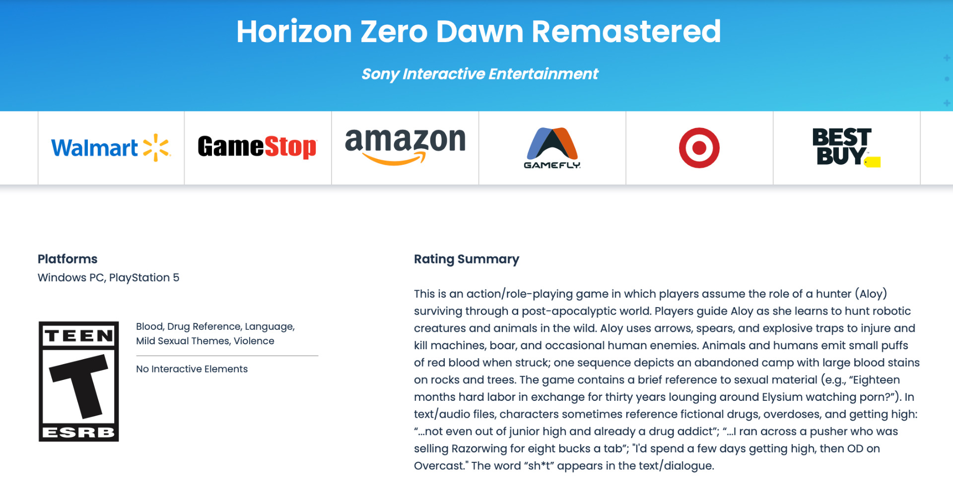 Chociaż wciąż nie jest to oficjalnie potwierdzona informacja, to w najbliższym czasie powinniśmy spodziewać się zapowiedzi Horizon Zero Dawn Remastered. Tytuł doczekał się oceny przez ESRB, które wskazuje sugerowany wiek odbiorcy do każdej nadchodzącej produkcji. Gra początkowo była dostępna wyłącznie na PlayStation 4, by po kilku latach trafić również na komputery. Dzieło Guerrilla Games było już wcześniej ulepszane dla PlayStation 5, ale teraz możemy znacznie większych zmian.