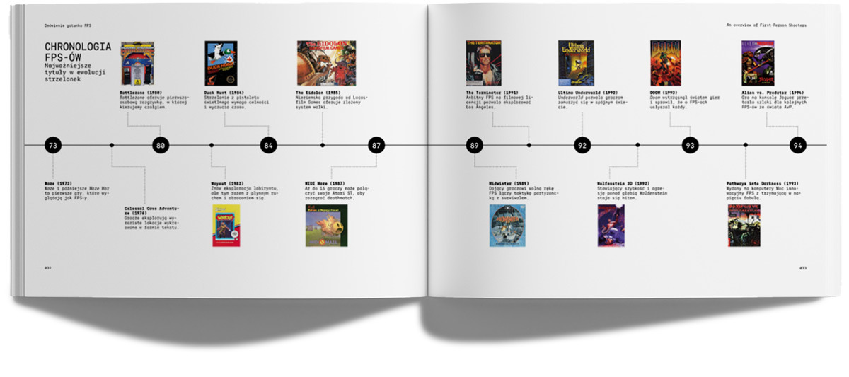 Dzieło wydawnictwa Gamebook jest przekładem bestsellerowej książki wprost z Zachodu. To bogato ilustrowany album szczegółowo opisujący ponad 180 kultowych FPS-ów, w tym prawdziwych legend. W książce znajdziemy dosłownie wszystko. Od sztosów 10/10 w postaci Doom, Half-Life czy pierwszego Metroid Prime, po totalnie nieudane eksperymenty jak Gun Buster czy Assassin 2015.