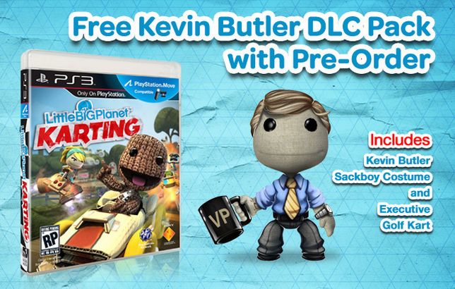 Sony ujawniło dziś, że sam Kevin Butler zamieni się w sackboya i wystąpi gościnnie w nadchodzącym LittleBigPlanet Karting. Niestety, Butler będzie dodawany jedynie, jak bonus do zamówień przedpremierowych gry, w skład, którego wejdzie kostium, oraz ekskluzywny Golf Kard. Oczywiście, później pewnie będzie go można zakupić na PlayStation Network, jako jeden z płatnych dodatków..
