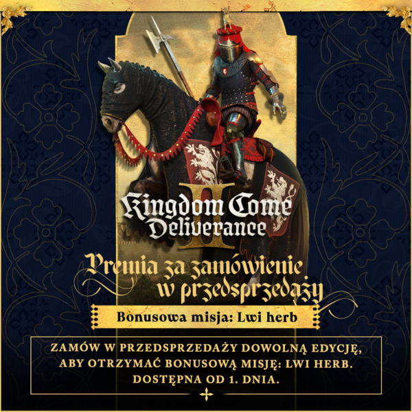 Kingdom Come: Deliverance II Day One Edition zawierający pełną grę. Zamawiając w przedsprzedaży otrzymamy również dodatek Lwi herb.