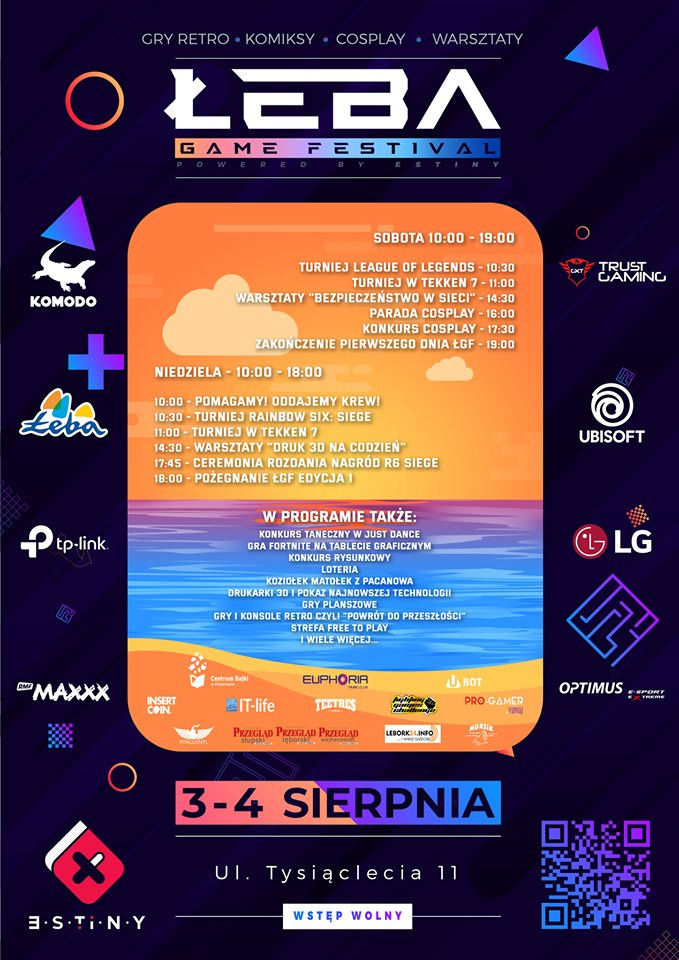 Wydarzenie odbędzie się w hali widowiskowo-sportowej przy ul. Tysiąclecia 11. Partnerem Łeba Game Festival jest m.in. Miasto Łeba, Grupa Estiny, radio RMF MAXXX i Trust Gaming. Wstęp na teren festiwalu jest bezpłatny.