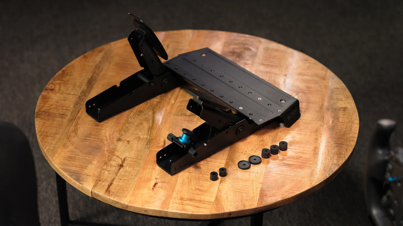 No i jak mamy podstawę, to i przydałyby się do tego pedały. Tutaj otrzymujemy nowe pedały z czujnikiem nacisku do aż 75 kg, regulacją położenia oraz możliwością dodatkowej personalizacji w oprogramowaniu Logitech G HUB.