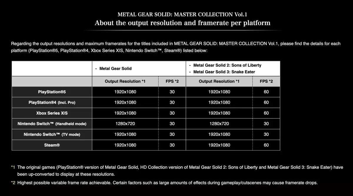 Metal Gear Solid: Master Collection Vol.1 zadebiutuje 24 października na Xboksach Series X/S, Playstation 4/5, Nintendo Switchu oraz PC. Japońska korporacja nie pochwaliła się szczegółami ulepszeń na poszczególne platformy, aż do dzisiaj. Niestety na pierwszy rzut oka nie mamy powodów do radości...