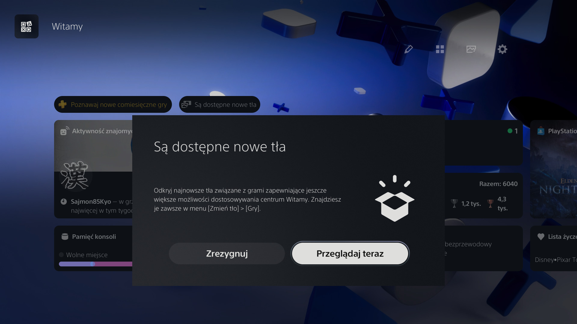 Jak donosi profil użytkownika Chi, Sony zaczęło udostępniać wybranym graczom opcję ustawienia dynamicznego tła ekranu głównego konsoli. Do wyboru będzie co najmniej kilkanaście motywów, głównie pochodzących z ikonicznych gier Sony jak Ratchet & Clank, czy Days Gone, oraz także kilka nawiązujących do kojarzących się z marką ikonicznych kółek i kwadratów.