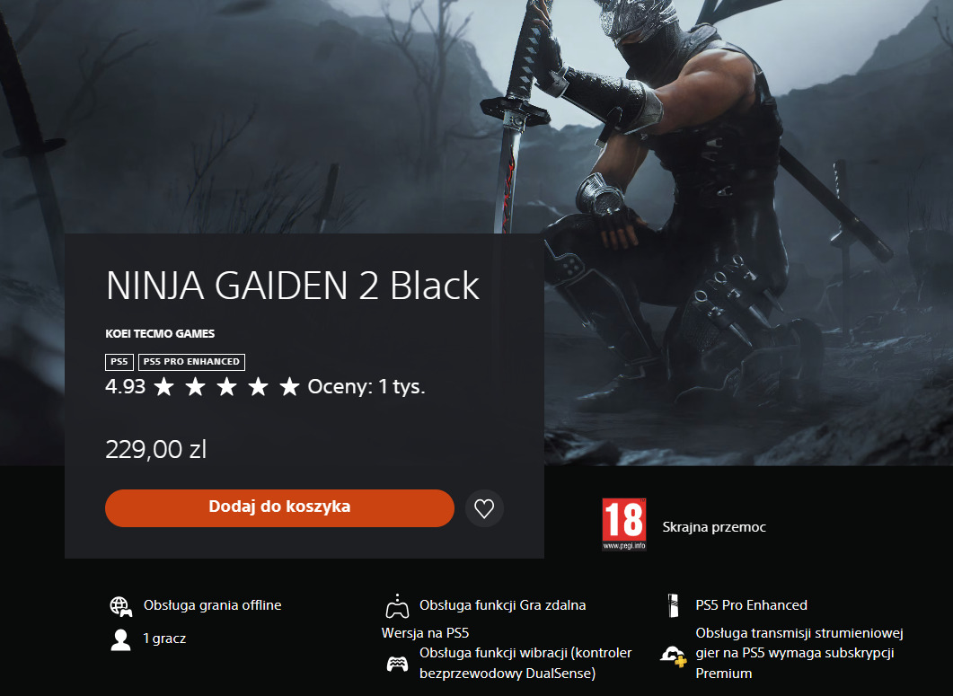 Tak jak się spodziewaliśmy początkowo kreowany na ekskluzywny remaster Ninja Gaiden 2: Black pojawił się właśnie w PlayStation Store i jest już dostępny do zakupu na PS5 za 229 zł. Gra otrzymała także wsparcie PS5 Pro.