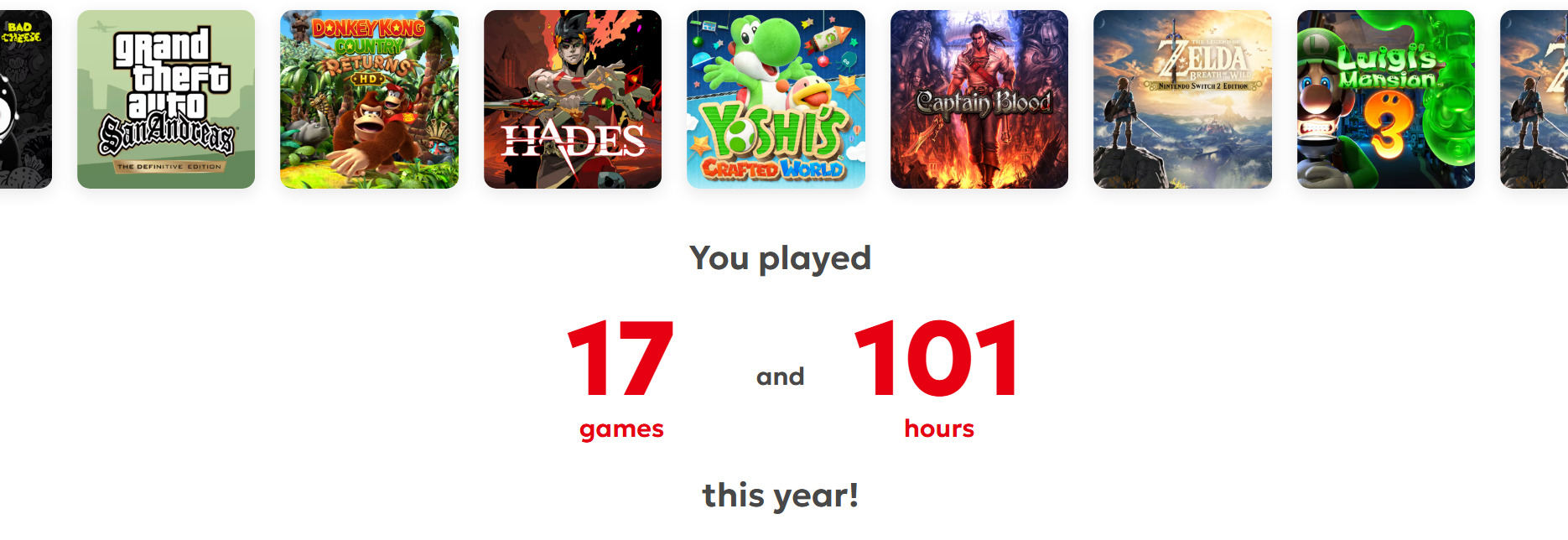 Osobiście bardzo lubię takie podsumowania. Jest to prosty sposób na sprawdzenie i przypomnienie sobie całego roku z perspektywy gracza oraz której grze poświęciliśmy najwięcej czasu. Dajcie znać w komentarzu, ile Wy spędziliście godzin na swoim Switchu.