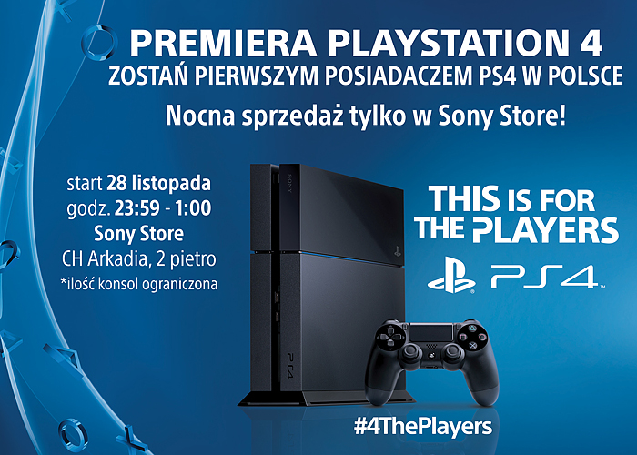 Jeśli swędzą was portfele i nie możecie doczekać się startu po PlayStation 4, a w dodatku mieszkacie w okolicy stolicy, macie szansę zakupić konsolę już 28 listopada. Sony bowiem organizuje 61-minutową sprzedaż w swoim firmowym salonie w CH Arkadia w Warszawie. Akcja zaczyna się o godzinie 23:59 we czwartek i trwa tylko do 1:00. Niestety, ilość konsol jest ograniczona, dlatego tym, którzy mają do Warszawy troszkę dalej niż "rzut beretem", radzimy zaczekać do godziny 9:00 na otwarcie lokalnych sklepów RTV.