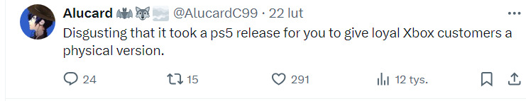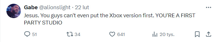 Użytkownicy X, dostrzegli to i zaczęli wytykać studiu, że swoją konsolę powinni traktować priorytetowo, a nie po macoszemu.