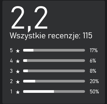 Nie inaczej jest w sklepie Microsfotu. Ocena na podstawie 115 recenzji (Xbox + PC) wynosi 2.2/5, choć warto zauważyć, że tam wystarczy posiadać abonament Game Pass oraz zainstalować grę na dysku, by wystawić jakąkolwiek recenzję.