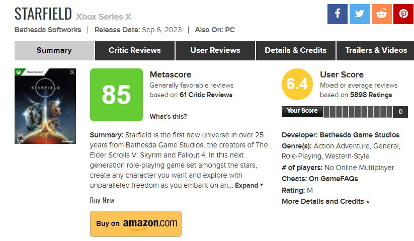 "Starfield" to niewątpliwe jedna z największych premier w tym roku, a dla Microsoftu jedna z największych w historii. Choć początkowo produkcja Bethesdy podbiła serca graczy, to im dalej las w, tym ciemniej... Aktualnie mamy do czynienia z sytuacją, gdzie oceny użytkowników mocno lecą w dół i raczej nie mamy tu do czynienia ze zjawiskiem "review bombingu".