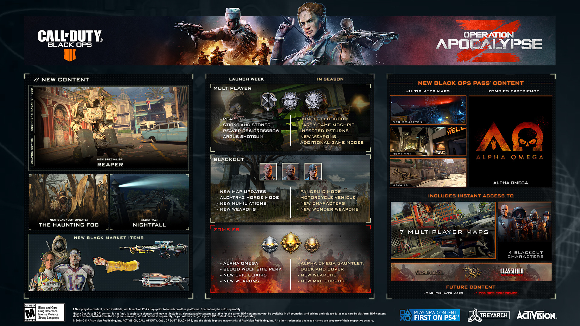 Treyarch wypuściło dziś aktualizację do COD:BO4 (na PS4, Xbox nieco później). Zmiany dotknęły klasycznm multiplayer, tryb Blackout (battle royale) i kooperacyjny Zombies. Wszystkie 3 tryby dostały nowe rodzaje broni, oraz aktualizacje/nowe mapy Jest nawet grywalny Danny Trejo.