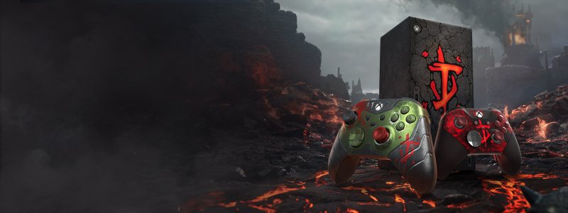 Osłona zmieniająca wygląd konsoli Xbox Series X (cena 239,00 zł) "odtwarza moment rozbicia ogromnej ciemnej skały, z której wyłania się jasnoczerwony znak Slayera", a na jej rewersie będą widoczne kozacko wyglądające inskrypcje. W przypadku kontrolerów klasyczny pad będzie stylizowany na zbroję Doom Slayera (cena 349,00 zł), natomiast Xbox Elite Wireless Controller Series 2 doczeka się krwawej stylizacji (cena 899,99 zł).