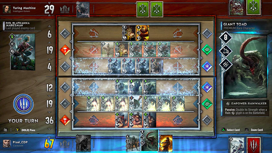 O tym, że CDP trochę umoczył z Gwintem mówi się w branży growej od dawna, chociaż oficjalnie tego nigdy nie potwierdzono, a w projekt wciąż pakowane są pieniądze, więc chyba nie jest aż tak tragicznie (dla niektórych firm wyjść na zero czy zarobić 5% wciąż oznacza klęskę - a wiemy, jakie sukcesy potrafi odnosić CDP i jakie ma ambicje). Gra przechodziła przynajmniej dwie duże zmiany (w tym zmianę liczby rzędów na karty - z trzech jak w Wiedźminie 3, na 2), a nawet wyszedł spin-off bazujący na dwurzędowym gwincie - czyli Wiedźmińskie Opowieści: Wojna Krwi (bardzo fajne swoją drogą). Zresztą, sami twórcy potwierdzają, że z PCtowym i mobilnym Gwintem wcale nie jest tak źle: