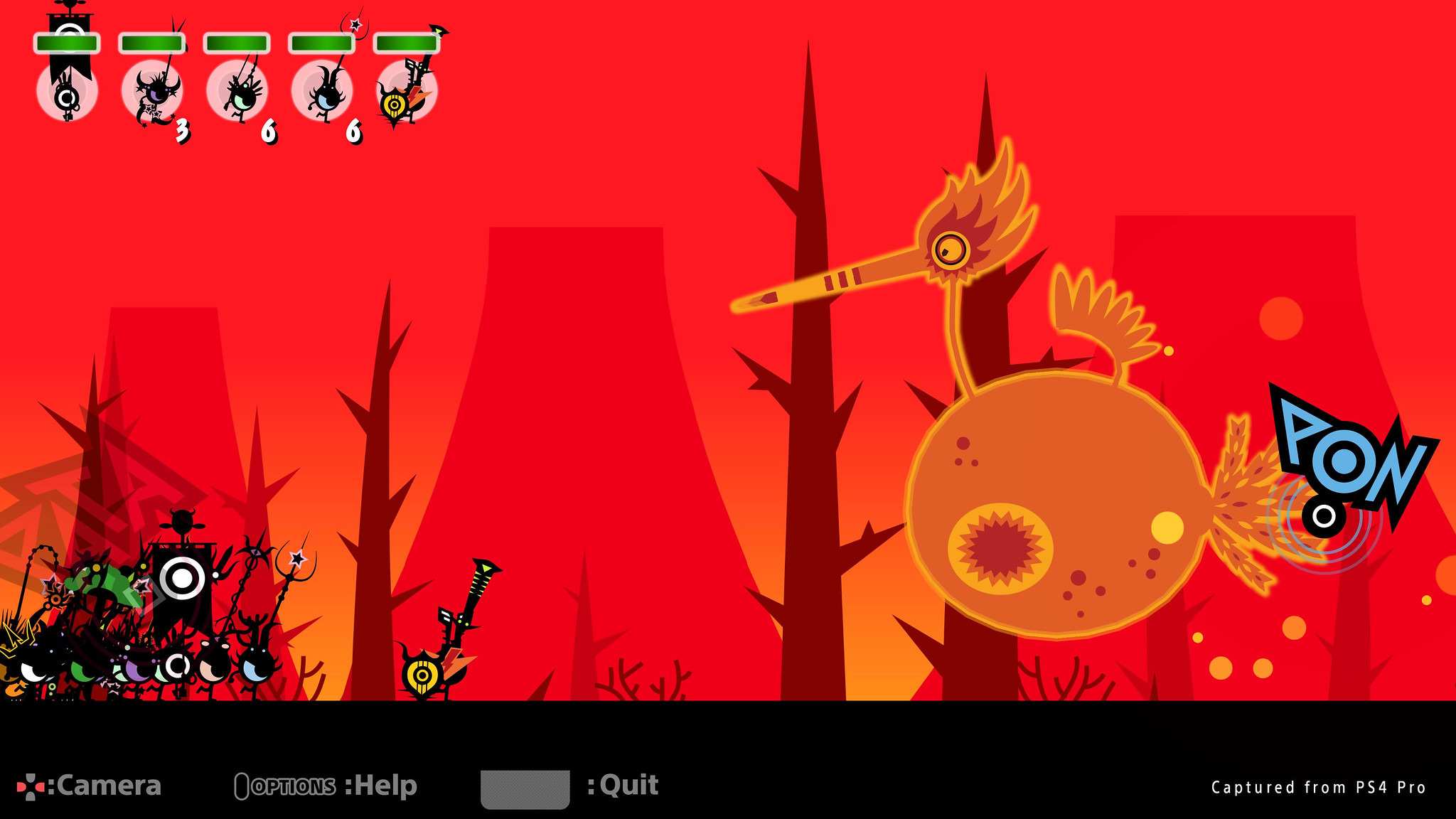 Jeśli nie graliście w Patapon - to gra rytmiczna, gdzie każdy z przycisków geometrycznych odpowiada za jeden z czterech dźwięków-okrzyków, a my jako bóstwo możemy w ten sposób sterować małymi Pataponami. Do przemieszczania się, atakowania czy polowań na stwory służą konkretne kombinacje, zazwyczaj wbijane po cztery, które należy wybić zgodnie z rytmem, aby nasze stworki reagowały. Jeśli rytmu nie złapiemy - zaczną się przewracać i nie będą przeć na przód. Ze świecą szukać drugiej gry z takim sterowaniem.
