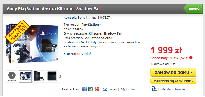 Na trzy tygodnie przed oficjalną premierą PlayStation 4 nie wiemy nic na temat dostępności i ceny konsoli. Nie mamy również pojęcia, czy do sklepów zawitają zestawy składające się z nextgena i gry. Sony milczy na ten temat tłumacząc się brakiem informacji, a gracze wciąż żyją w niewiedzy wypatrując jakichkolwiek wskazówek. Warto więc zwrócić uwagę, że RTV EURO AGD umieścił właśnie w swojej ofercie PlayStation 4 w zestawie z Killzone: Shadow Fall.