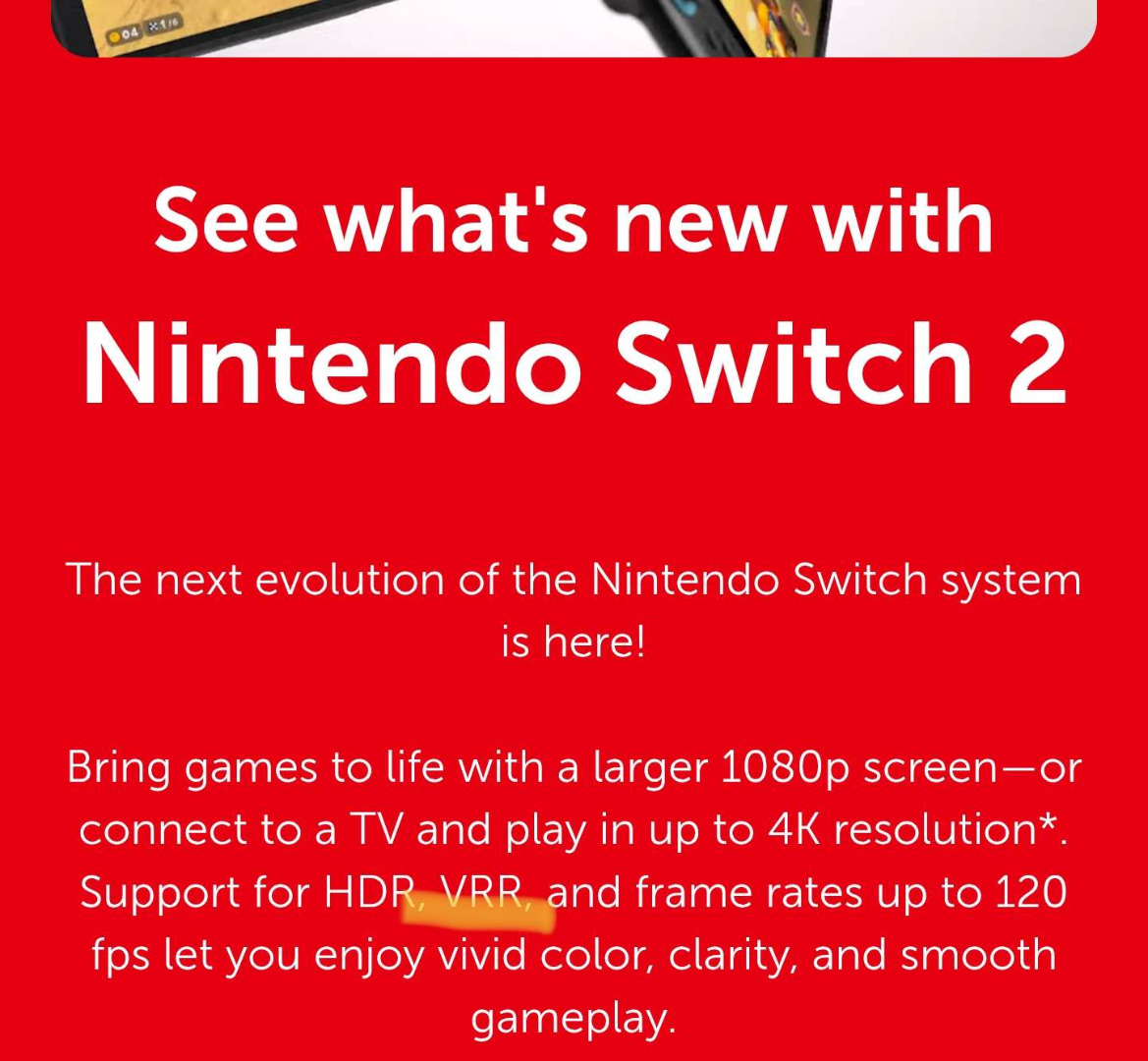 Nintendo potwierdziło obsługę VRR w konsoli Nintendo Switch 2. Tym samym otrzymamy pełny pakiet, tj 4K, HDR oraz VRR, co bardzo nas cieszy!