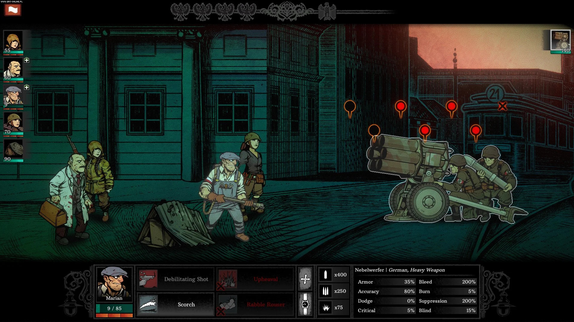 Warsaw to turowa gra RPG, designem nawiązująca do Darkest Dungeon, opowiadająca o Powstaniu Warszawskim, w której gracz staje oczywiście po polskiej stronie i mierzy się z nieporównywalnie silniejszą stroną nazistowską. Gra opowiada historię fikcyjnych bohaterów i nie prezentuje alternatywnego zakończenia względem tego historycznego - mimo więc różnych sukcesów po drodze, fabularnie przegrywamy. Warto dodać, że w grze działa system permanentnej śmierci, lekko więc nie będzie.
