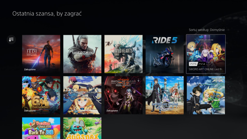 Stracimy dostęp także do gier z serii Sword Art Online, czyli tytułów MMORPG opartych na popularnym serialu anime. Ukończenie każdego tytułu będzie wymagać od nas kilkudziesięciu godzin rozgrywki, więc poznanie całej serii przed usunięciem z katalogu będzie bardzo trudne.