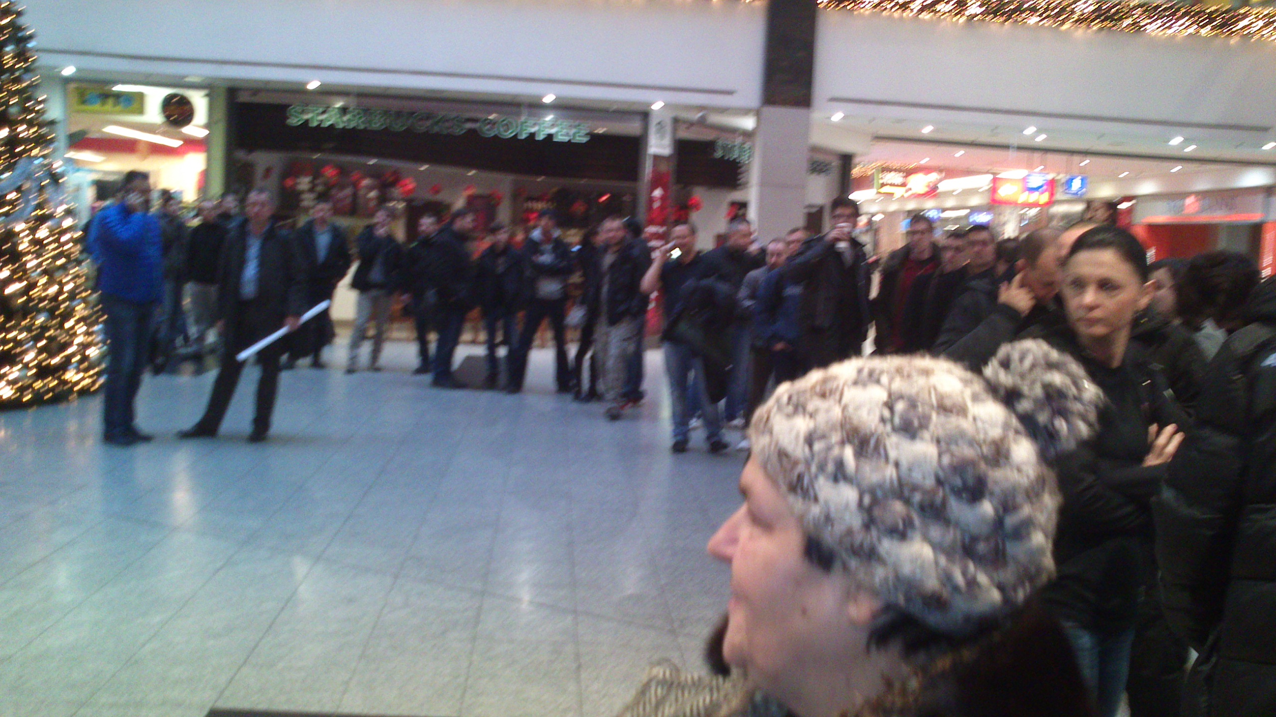 Pomimo przybierającej ilości chętnych na konsole - w kulminacyjnym punkcie liczba obecnych sięgnęła ponad stówę, kulturalnie formowała się kolejka, co zobaczycie na poniższych zdjęciach. Niestety, sprzedawców premiera "zaskoczyła" niczym śnieg zimą kierowców i bezmyślnie pozwolili, aby dziki tłum ruszył na sklep. A może chcieli sobie po prostu popatrzeć na dantejskie sceny?