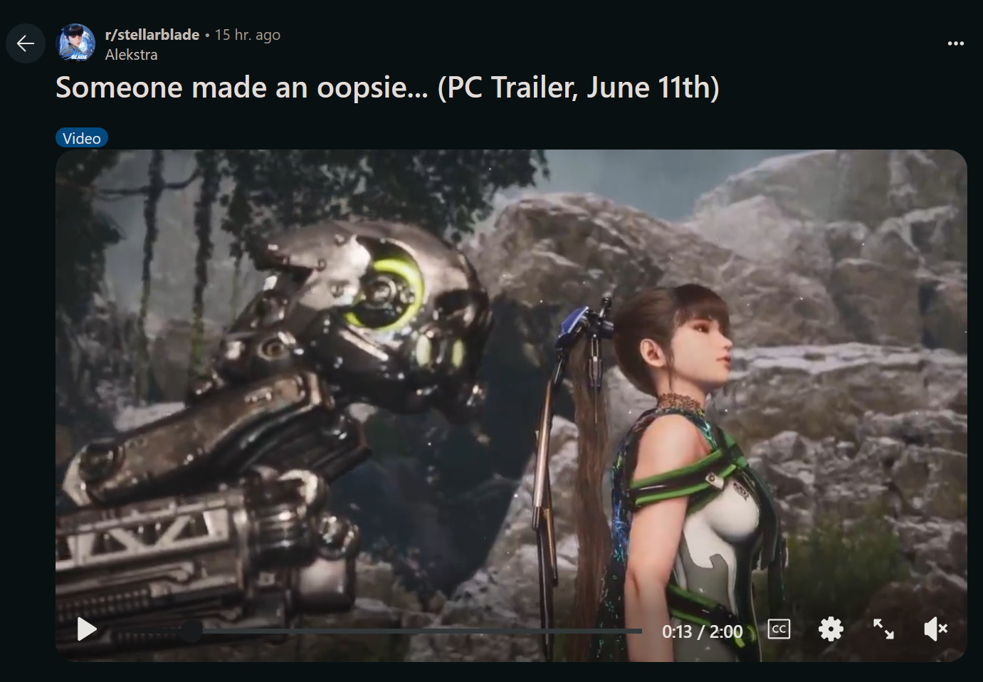 Głupie błędy w branży zdarzają się co jakiś czas i choć z reguły przechodzą bez echa, to tym razem echo słychać nawet na księżycu. Wczoraj ktoś administrujący oficjalnym kanałem PlayStation na Youtube najprawdopodobnie chciał przygotować do publikacji nowy trailer Stellar Blade, powstający z okazji premiery na PC. No i przygotował... tylko, że od razu ustawił go jako publicznie dostępny i trailer wleciał na serwery dostępne dla każdego.