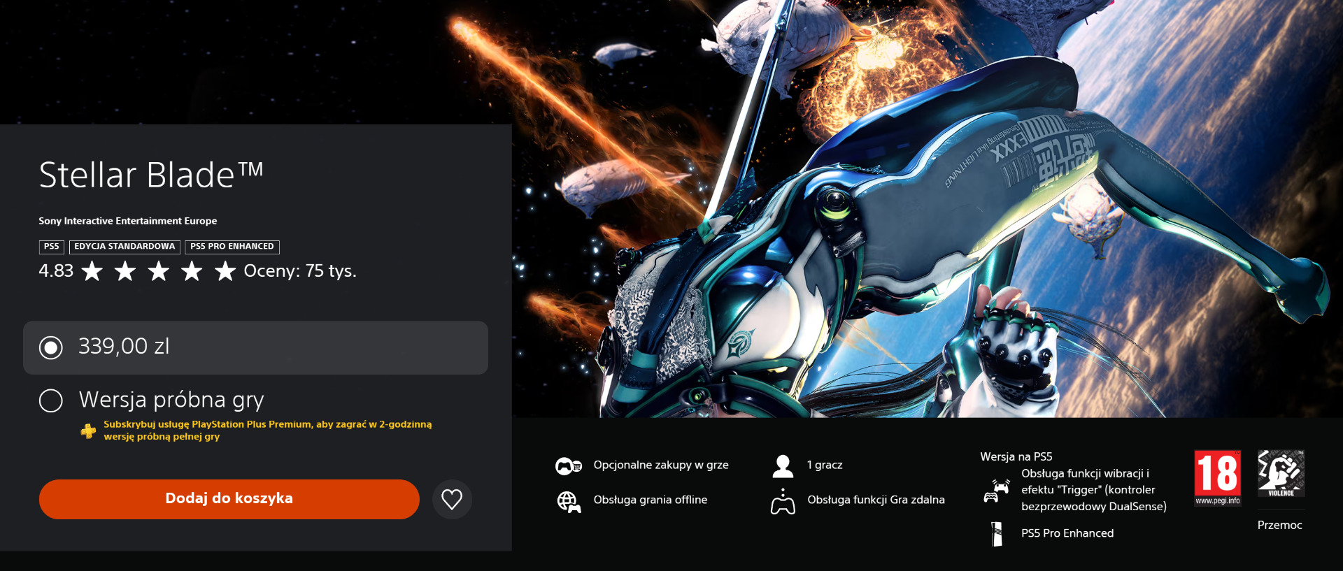 Niestety w materiale zabrakło cen, ale można się spodziewać, że będą wysokie, bo Stellar Blade trzyma akurat cenę jak mało która gra. Obecnie za wersję cyfrową trzeba zapłacić pełną cenę 340 złotych, a gra doczekała się jedynie kilku promocji obniżających koszt do nadal sporych 254 złotych. My z naszej strony możemy ten tytuł gorąco polecić, bo jest ten ceny wart. Czekacie na niego ? ?