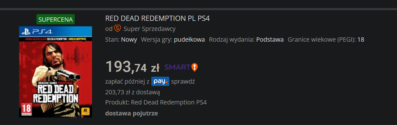 Grę zakupicie za około 190 zł i jest ona oczywiście kompatybilna z najnowszym PS5. Na płycie znajdziemy zarówno podstawową wersję gry, jak i dodatek Undead Nightmare — fabularne rozszerzenie do Red Dead Redemption, które wprowadza mroczny nastrój do świata westernów.