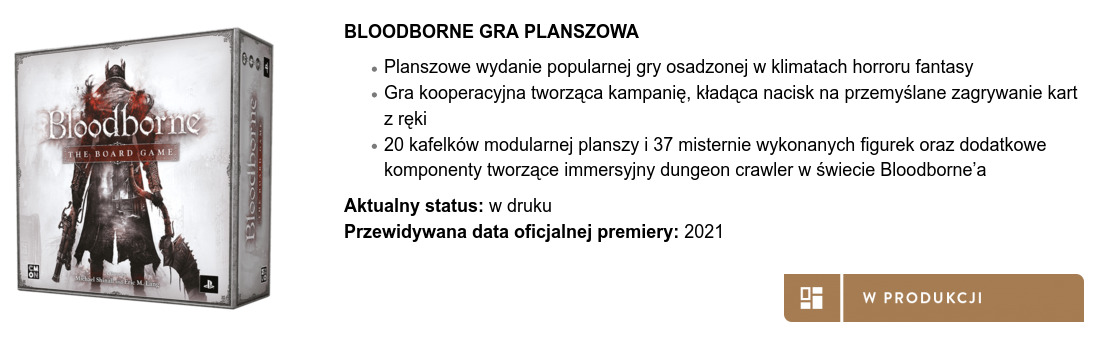Tutaj jednak naprzeciw temu problemowi wybiega inna produkcja w tym samym uniwersum - Bloodborne: Gra Planszowa, która przeznaczona jest już dla 1 do 4 graczy. Gra zawierać będzie ponad 500 kart, ponad 100 tokenów i aż 37 miniaturek, więc to już jedna z grubszych pozycji i raczej nie prędko się znudzi (i zajmie pewnie cały stół).