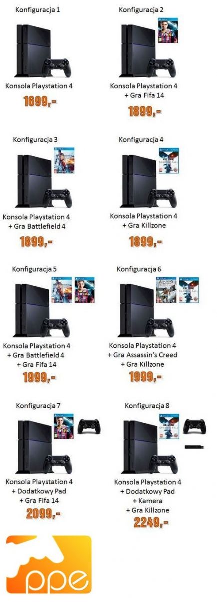 Gracze informują, że Saturn rozsyła pytania, w których prosi o wybranie jednego z ośmiu specjalnych zestawów PlayStation 4. Na chwilę obecną oferta dotyczy jedynie osób, które złożyły w sklepie stosowny pre-order. Najprawdopodobniej jednak możemy również liczyć na to, że te same, lub podobne zestawy wylądują na sklepowej półce. Czekamy zatem na kolejne rewelacje i liczymy na miłe zaskoczenie, jeżeli chodzi o dostępność PlayStation 4 w naszym pięknym kraju.