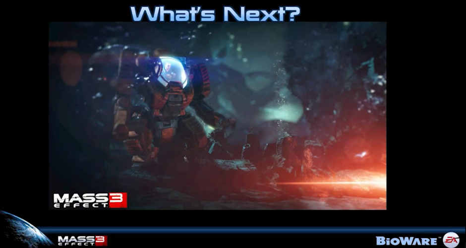 Tully Ackland ( tak, ja również o tym Panu nigdy nie słyszałem) napisał na oficjalnym Twitterze BioWare, że wieczorem powinniśmy wypatrywać pewnego newsa związanego z trzecią częścią Mass Effect. Raczej na pewno, BioWare zmajstruje nam jakiś trailer, oraz pierwsze informacje na temat "singlowego" rozszerzenia do najnowszych przygód Komandora Sheparda. Mówi się, że w dodatku zwiedzimy morskie głębiny pewnej, nieznanej nam dotąd planety, co zasugerowało już samo BioWare publikując tę oto grafikę na imprezie Comic-Con.