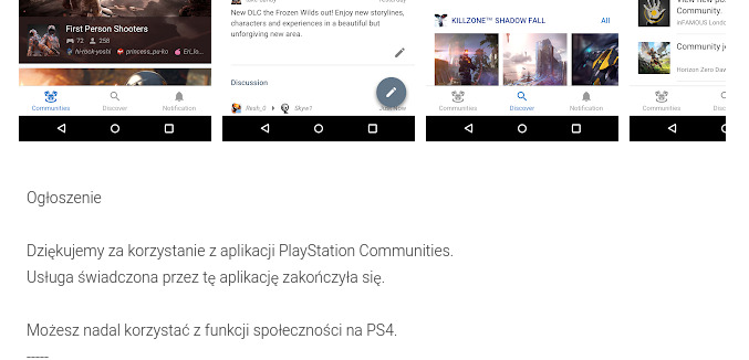 Wygląda jednak, że Sony zrewidowało te funkcjonalności i właśnie zaczyna się ich mocne ograniczanie. Jakiś czas temu zdziwiło mnie na telefonie, że aplikacja PlayStation Communities przestała działać i wyświetlała komunikat o zaprzestaniu wspierania. Myślalem, że jej funkcjonalność zostanie przeniesiona do głównej aplikacji PlayStation w ramach unifikacji, ale to był zły trop. Wygląda na to, że był to początek końca wsparcia tej funkcjonalności.