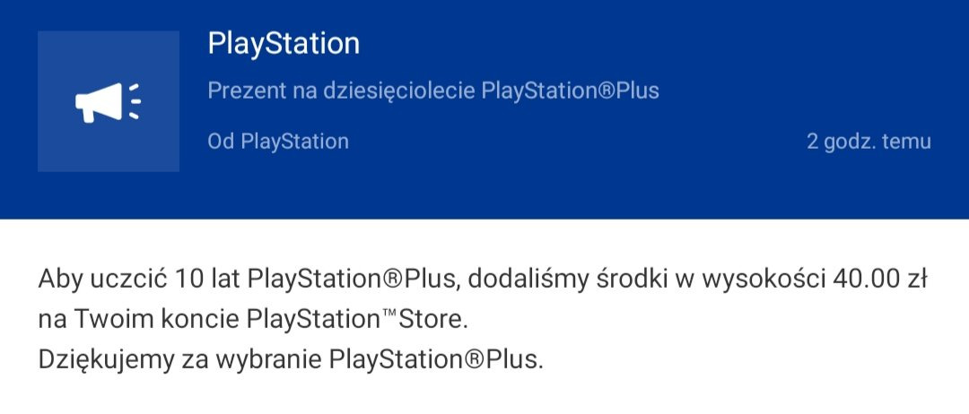 Niestety nikt nie wie wg jakiego klucza wybierane są osoby które dostają taki prezent. Wiadomo jedynie, że to bonus z okazji 10-lecia PlayStation Plus, a aby go otrzymać nie trzeba mieć aktywnego abonamentu, ani też nie trzeba było mieć go nieprzerwanie przez ostatnie 10 lat. Prawdopodobnie bonus w postaci doładowania konta 40zł trafia po prostu do losowych posiadaczy PlayStation 4.