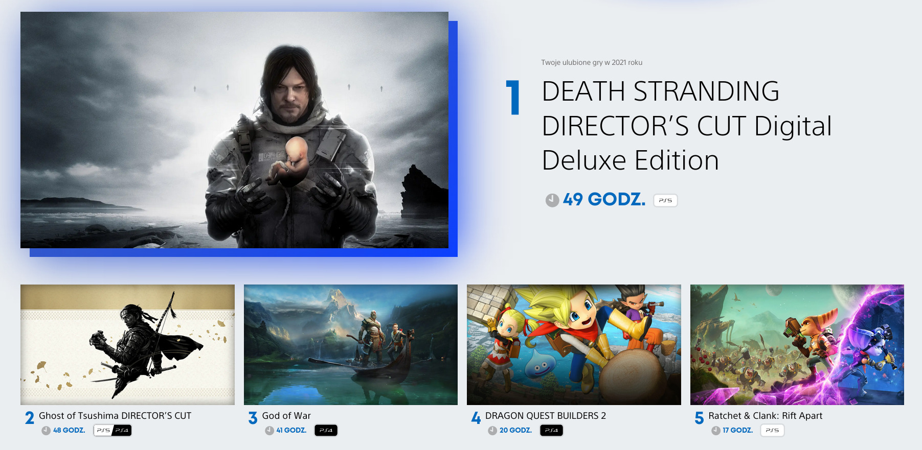Co ciekawe, dla wybranych gier Sony przygotowano odrębne statystyki i np. u mnie pojawiły się statystyki z Death Stranding, mówiące o tym, że cała społeczność PlayStation zrealizowała w 2021 roku 9,4 miliona wirtualnych dostaw, niszcząc 55 tysięcy par butów.