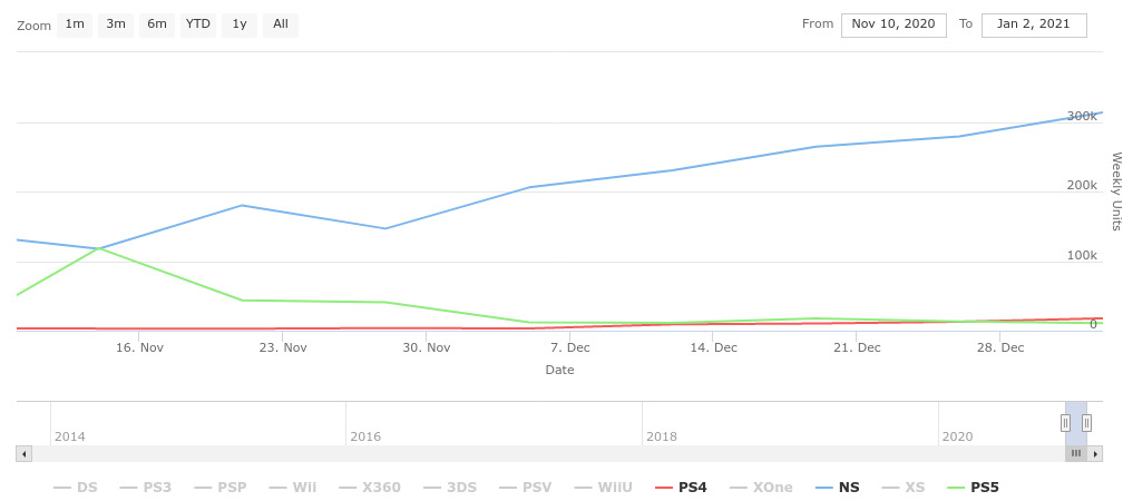 W ostatnim czasie parę serwisów donosiło o tym, że PlayStation 5 zaliczyło najsłabszy start z konsol Sony, a w dniu premiery Nintendo Switch sprzedawało się nieznacznie lepiej.