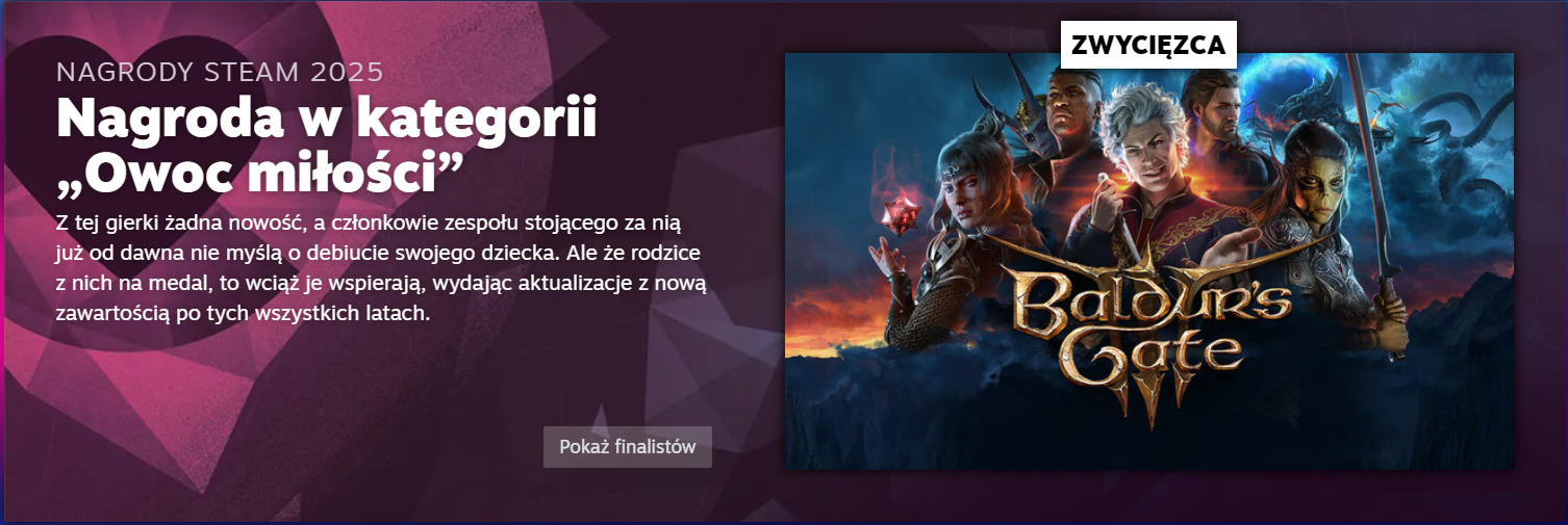 Weterani również nie zawiedli — Baldur’s Gate 3 zgarnęło Owoc Miłości.