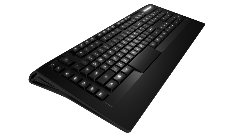 - Przycisk SteelSeries bez wymaganego oprogramowania z łatwością dostosuje jasność oraz wyłączy klawisze windows.