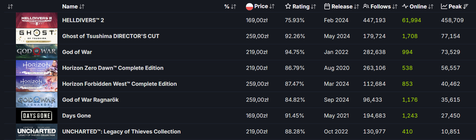 Stellar Blade stał się drugą najpopularniejszą grą PlayStation na Steamie, tuż za multiplayerowym Helldivers 2 (nieco ponad 450 000 graczy), pozostawiając w tyle wszystkie inne tytuły single-player od Sony.
