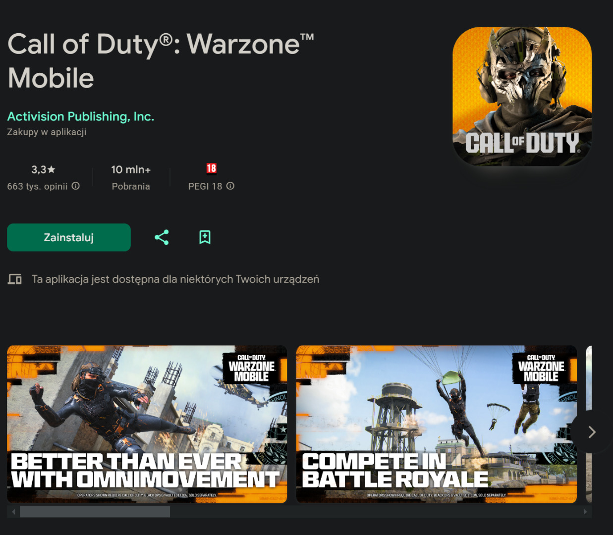 Activision ogłosiło bowiem właśnie, że nie mają zamiaru dalej wspierać swojego Call of Duty Warzone Mobile i zniknie on zarówno ze sklepu Google Play, jak i Apple App Store już 19 Maja. Powodem mają być słabe wyniki i popularność gry.