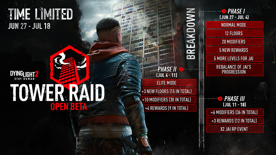 Wystartowały otwarte testy beta nowego trybu rozgrywki do Dying Light 2 Stay Human. Przez najbliższe trzy tygodnie, od 27 czerwca do 18 lipca, gracze mają możliwość testowania Tower Raid - nowego, skupiającego się na współpracy, trybu zabawy. Opinie graczy, biorących udział w testach, pomogą twórcom w dopracowaniu nowego trybu. Nadchodząca nowość została zaprezentowana na zwiastunie.