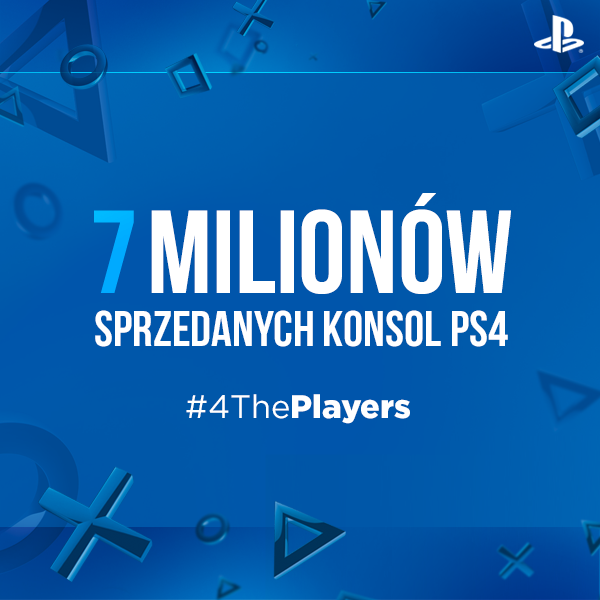 Sony pewnie bardzo się cieszy, bowiem ich najnowsze dziecko - PlayStation 4 - sprzedaje się jak ciepłe bułeczki, mimo marnej wciąż biblioteki gier i opóźnień wielu tytułów. Dziś ogłoszono, że sprzedało się już 7 milionów konsol na świecie - co upraszczając obliczenia oznacza, że 1 na 1000 mieszkańców naszej planety konsolę już ma. Ciekawe, czy zgodnie z trendem w Polsce sprzedało się już 40 tysięcy konsol?