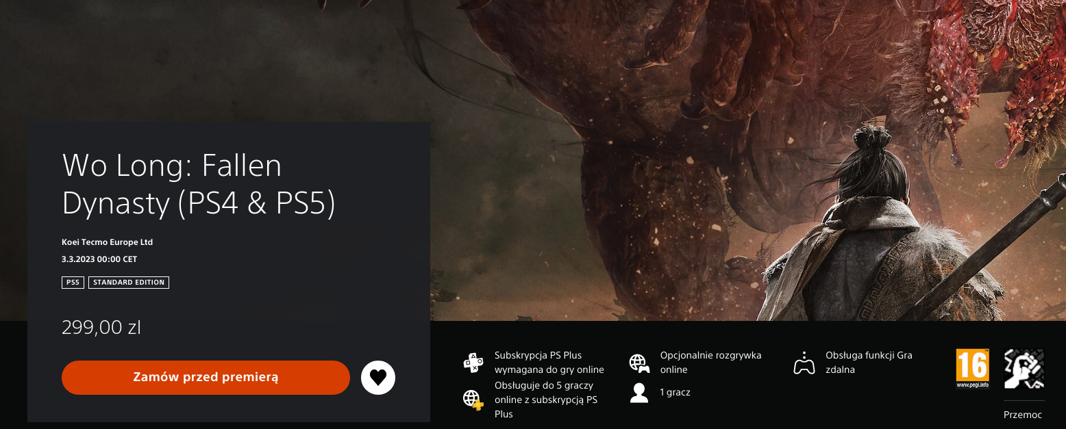 Do premiery świetnie zapowiadającego się Wo Long: Fallen Dynasty, od Team Ninja, twórców Ninja Gaiden i Nioh, zostały jeszcze 3 miesiące, ale to właśnie ten moment, gdy rozkręci się machina promocyjna. W cyfrowych sklepach są też dostępne już preordery i trzeba przyznać, że zaskakuje ich cena - zwłaszcza po tym, gdy ostatnio Microsoft zapowiedział, że ich gry wejdą w nowy, wyższy próg cenowy (319zł - 349zł).