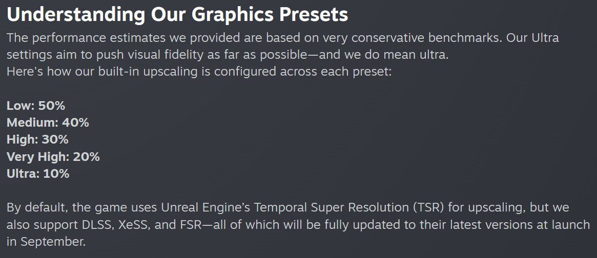Oliwy do ognia dolewa fakt, że na każdych ustawieniach grafiki tytuł ma korzystać z upscalingu. Oznacza to, że nawet na tych ustawieniach ultra na 4090 nadal nie macie natywnej rozdzielczości obrazu. Nie, nie robimy sobie z Was jaj.