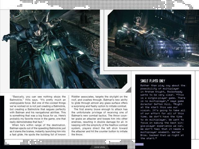 Batman: Arkham Knight uderzy na sprzęty nowej generacji już w październiku. Pierwsze informacje i zwiastun narobiły nam porządnego "smaka" na najświeższą produkcje mistrzów z Rocksteady Studios. Czas na jego zaostrzenie. Do sieci trafiły skany z Game Informera (w świetnej jakości), które wypchane są po brzegi oficjalnymi screenami z gry.