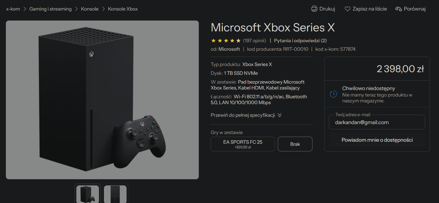 Ze względu na wysoki popyt konsumencki na konsole Xbox Series X ich podaż jest ograniczona w okresie świątecznym na terenie Polski. Jednocześnie pragniemy poinformować, iż Xbox Series S jest wciąż dostępny do nabycia w całym kraju. Zachęcamy graczy do odwiedzenia strony xbox.com/regions, by poznać więcej informacji nt. możliwości gry na Xbox.
