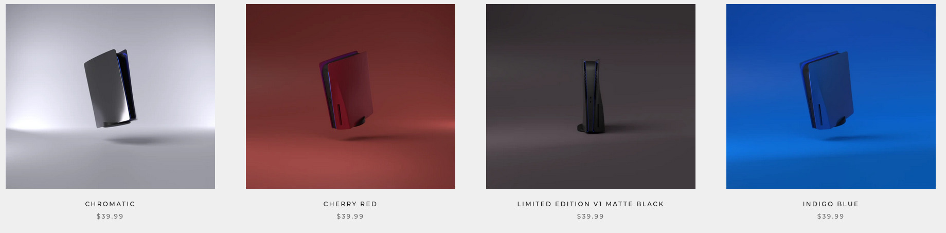 PlayStation 5, ze względu na swoją specyficzną budowę, pozwala na łatwe zdjęcie obu stron obudowy (zostaje tylko czarne wnętrze), więc już przed premierą znalazły się pierwsze firmy które oferują w ciemno (bo zapewne nie mają jeszcze konsoli aby zdjąć wymiary i zrobić odlew) kolorowe panele. I muszę przyznać, że wygląda to całkiem zachęcająco - mi spodobał się niebieski, ale jeszcze lepszym wariantem mogłyby być takie z motywami z gier, na które liczę.