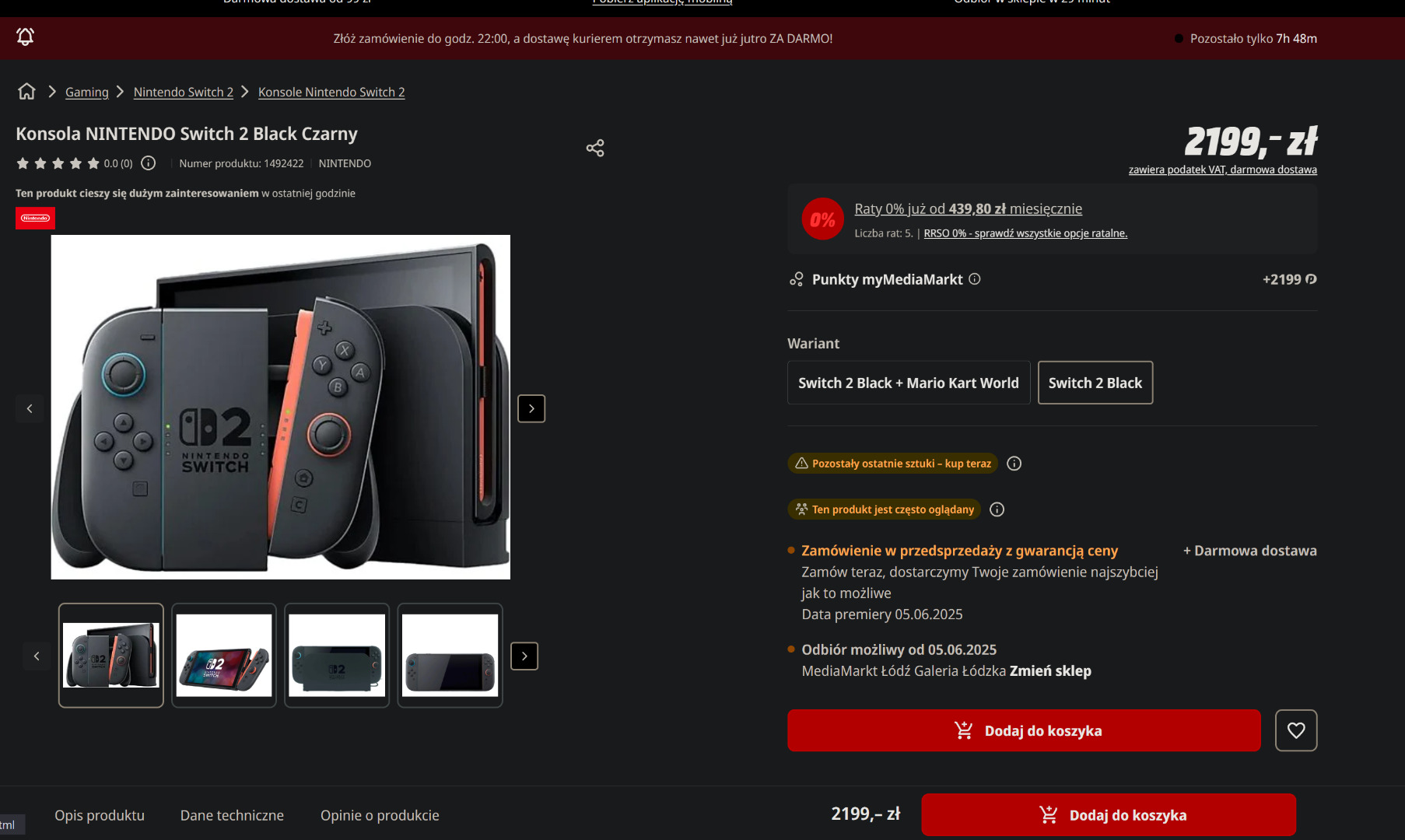 Chyba wszyscy czekaliśmy od wczoraj na ujawnienie oficjalnych polskich cen Nintendo Switch 2. Według przecieków preordery miały ruszyć za kilka dni, tj. 8 kwietnia... ale sklep MediaMarkt, albo specjalnie, albo przypadkiem z tej nieformalnej umowy się wyłamał. Nie tylko ujawnił polskie ceny, ale można nawet składać już zamówienia na konsolę TUTAJ