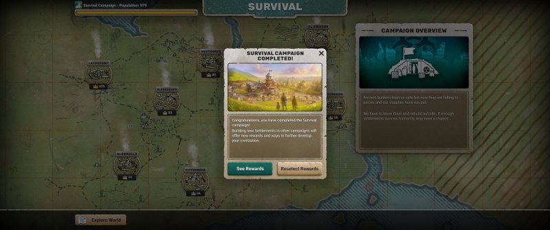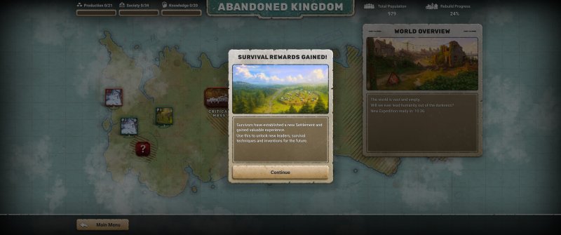 Rejon ten został podzielony na sektory, które możemy (a w zasadzie to musimy) przyłączyć do naszego punktu startowego, w którym znajduje się obóz. Każdy dołączony sektor może zagwarantować nam miejsce, z którego zdobywamy surowce, w postaci żywności lub drewna. To drugie może być zbierane z przeznaczeniem na opał lub budowę naszej osady.