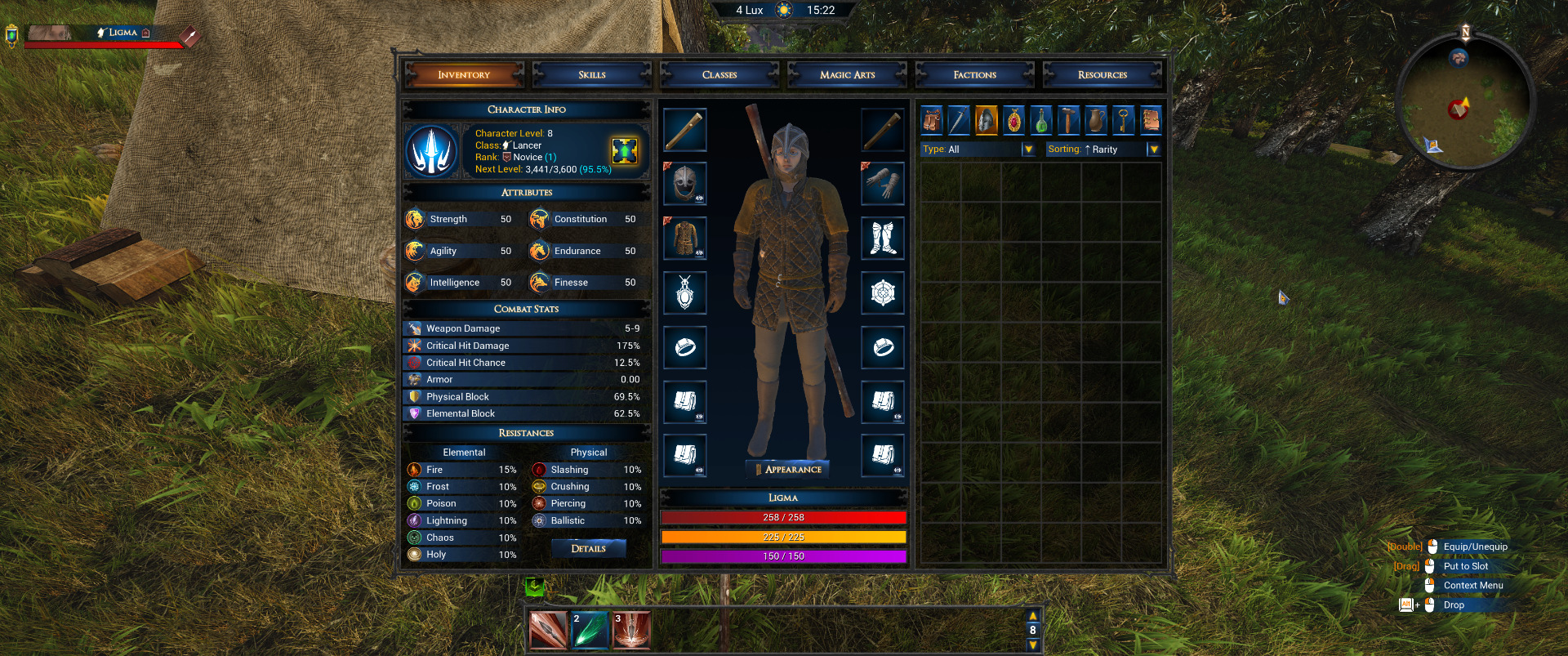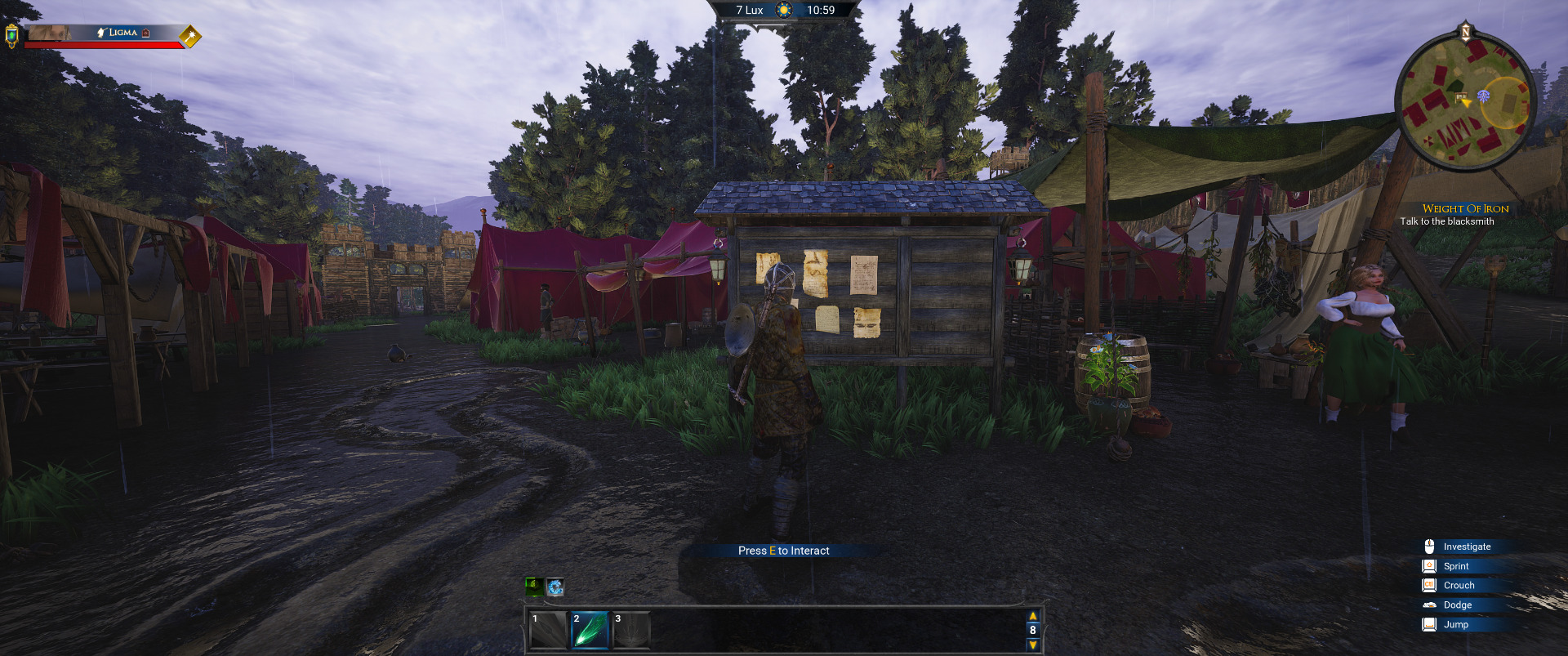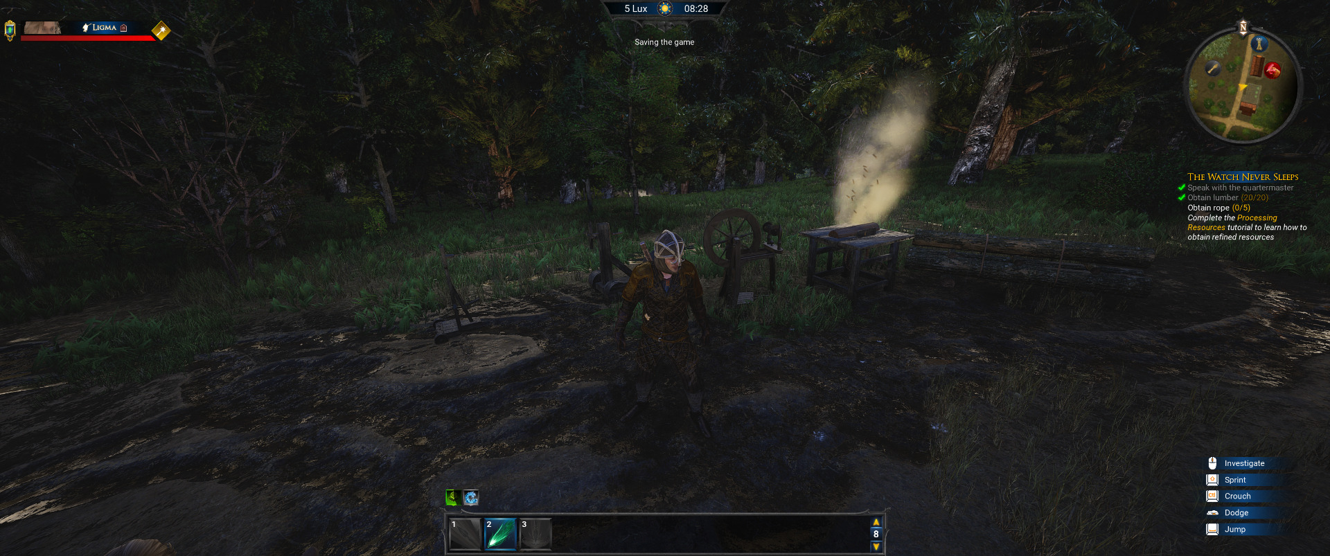 Rąbanie drewna daje nam doświadczenie w ramach odpowiedniego drzewka rozwoju zdolności wydobywczych, a zabijanie szczurów czy innych bandytów nagradza nas doświadczeniem ogólnym przekładającym się na nasz poziom oraz punkty atrybutów, jakie możemy zainwestować w statystyki pokroju siły, zręczności czy inteligencji. Za chwilę też okazuje się, że drewno możemy przerobić na deski, z włókien wytworzyć linę, a zebrane żelazo przetopić.