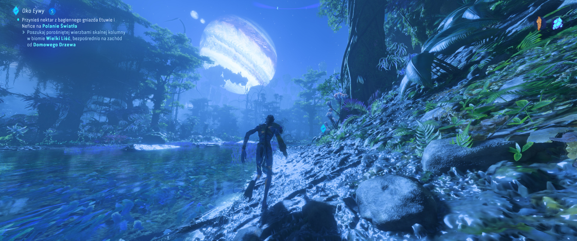 Żadnych problemów nie ma też w ciasnych przestrzeniach, w których teoretycznie kamera mogłaby wariować, biorąc pod uwagę oryginalny projekt gry oraz imponującą fizjonomię przedstawicieli rasy Na’vi. Nie natknąłem się w grze na nic, co w TPP byłoby jakkolwiek niewygodne. Praktycznie każda czynność, na jaką produkcja pozwala, wypada w nowej perspektywie lepiej. Skok w przepaść i przywołanie Ikrana prezentują się imponująco jak nigdy wcześniej!