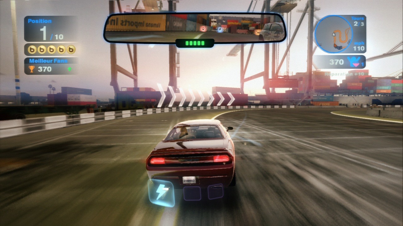 Dobra, zapewne zastanawiacie się, czy power-upy to dobry pomysł? Może zacznę od tego, że na trasie znajdziemy takie bajery jak: nitro, miny, tarcze oraz różnego rodzaju pociski takie jak słupy i kule energii elektrycznej. Jest więc w czym wybierać. Nie ma co ukrywać, większość broni jest inspirowanych arsenałem dostępnym w Mario Kart. Fajnie, że praktycznie każdy atak można skontrować swoim własnym, dodatkowo większość bonusów możemy odpalić w kierunku przeciwnym do jazdy, co daje jeszcze większe poczucie ostrej rywalizacji. Dodam jeszcze, że wszystkie znajdki są bardzo dobrze zbalansowane. Po dwóch godzinach spędzonych z Blur uświadomiłem sobie jedną bardzo ważną rzecz. Chcesz ochronić swój tyłek, zaopatrz się w oczy z tyłu głowy! Model jazdy nie jest jakoś specjalnie wysublimowany. Większość samochodów zachowuje się na trasie odpowiednio do swoich parametrów. Jedynym problemem mogą okazać się drifty, które nie należą do najłatwiejszych. Pamiętajmy jednak, że nie jest to ani Forza ani Gran Turismo.